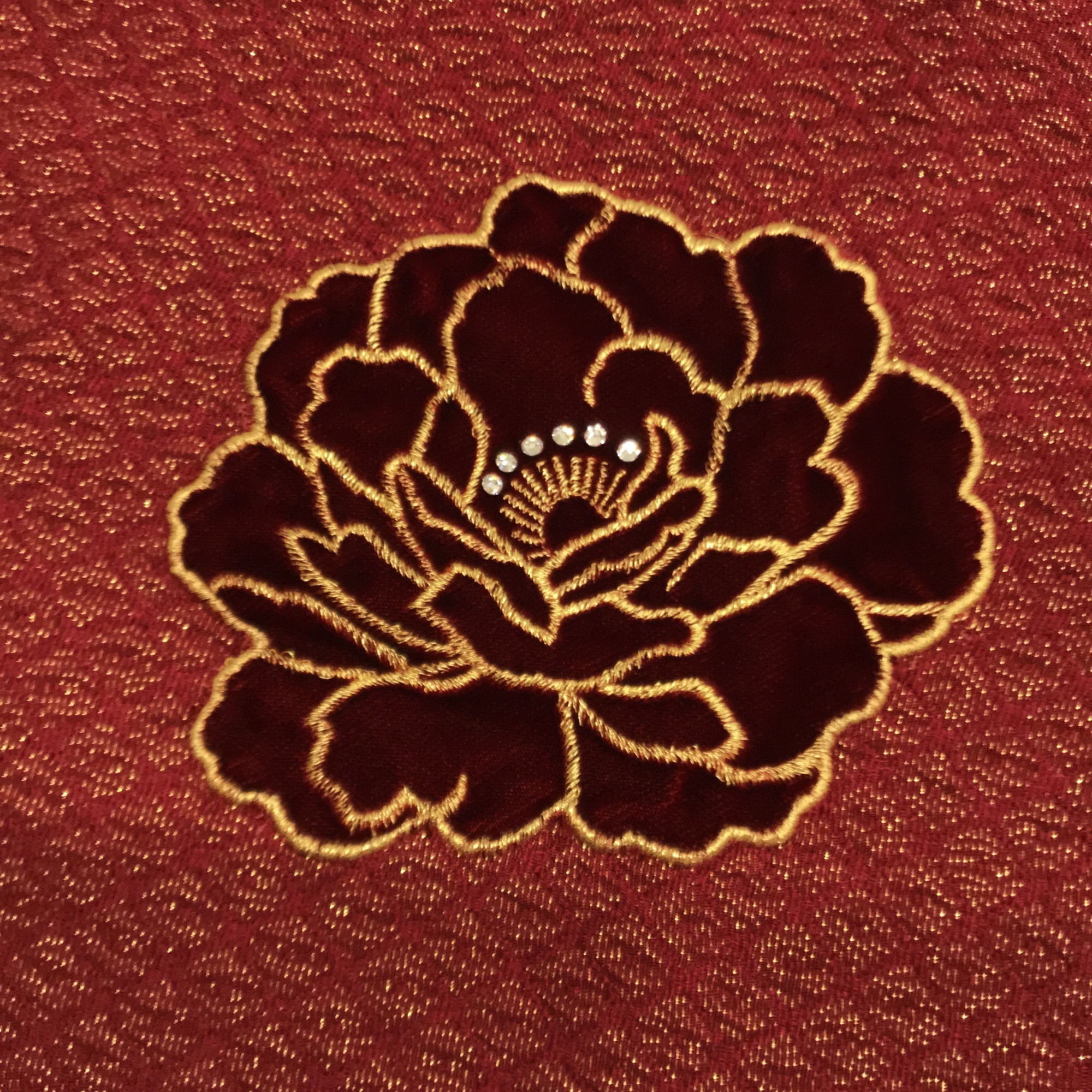 【帯揚】アップリケ花 ワイン