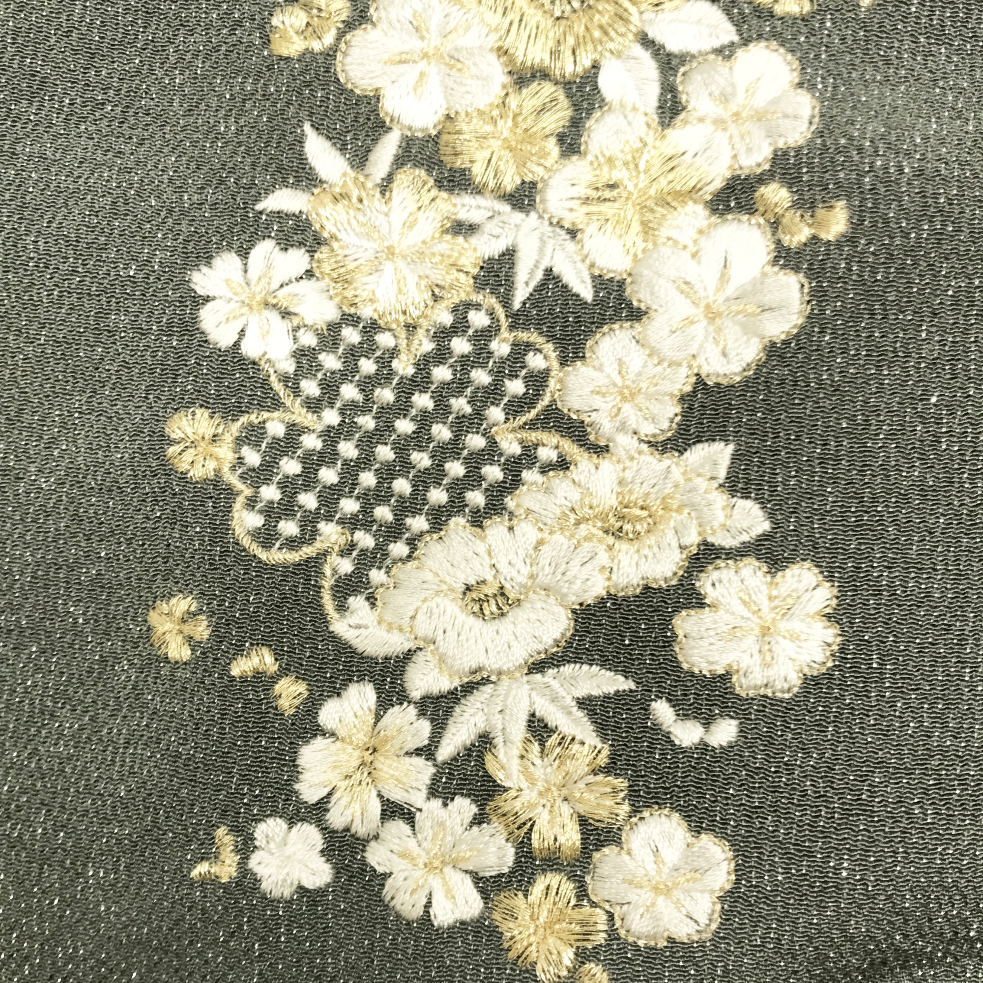 【帯揚】刺繍 濃グレー