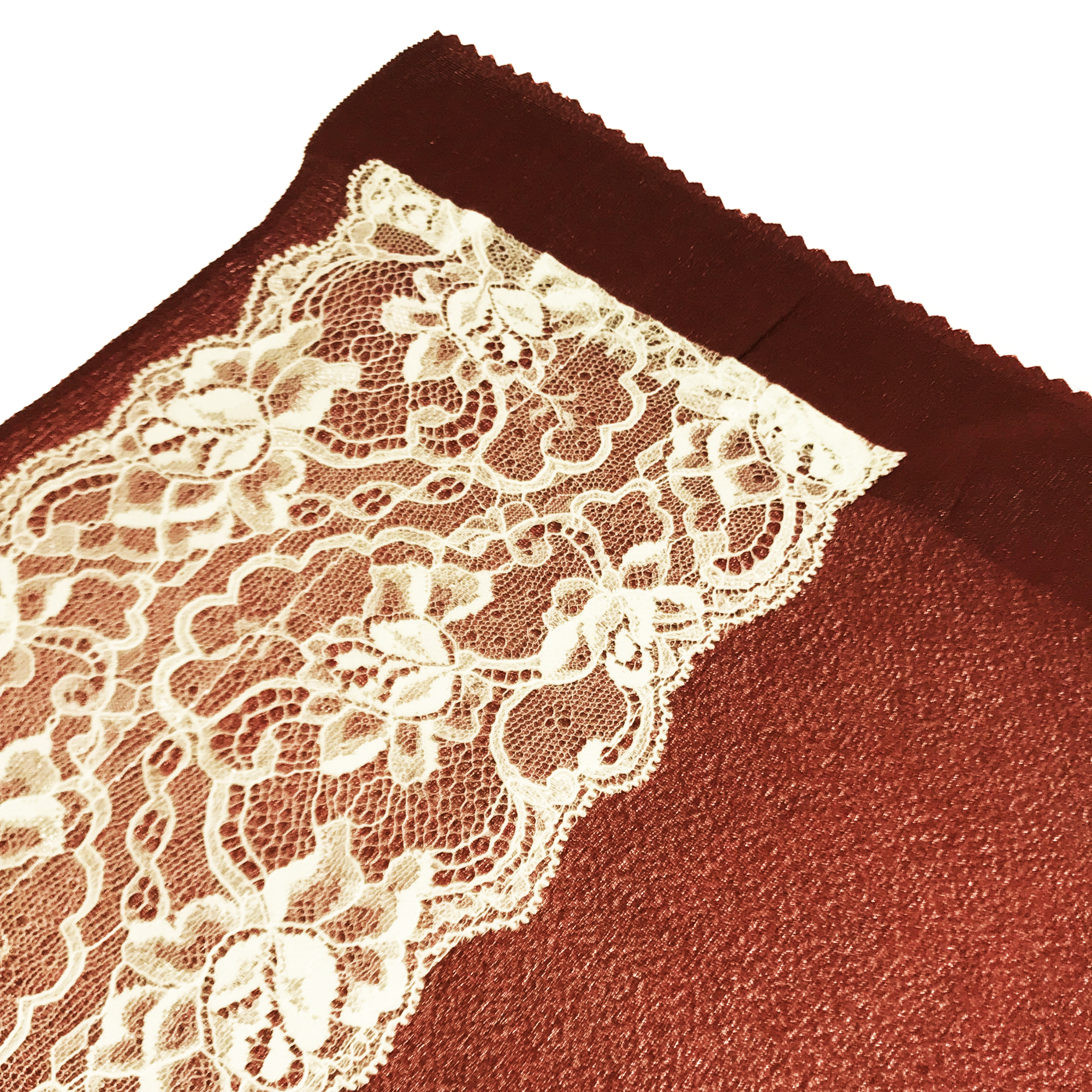 【帯揚】レース付 ワイン×白レース