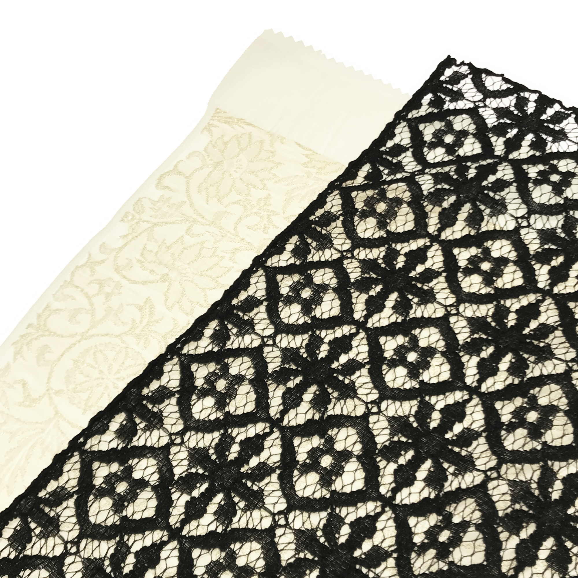 【帯揚】花更紗レース付 白×黒レース
