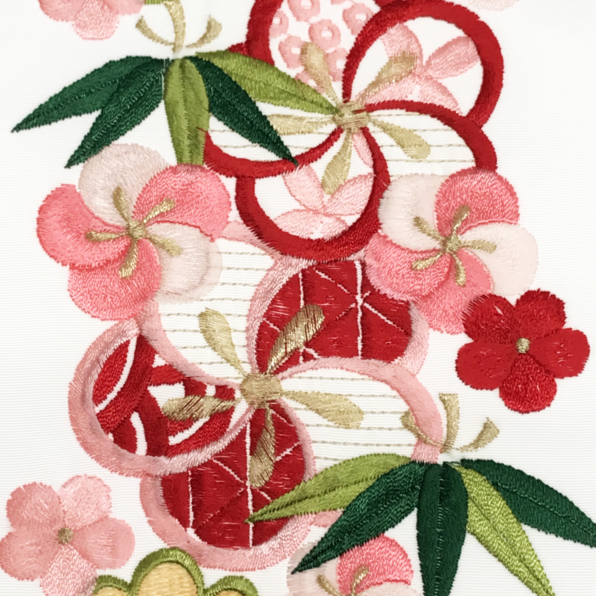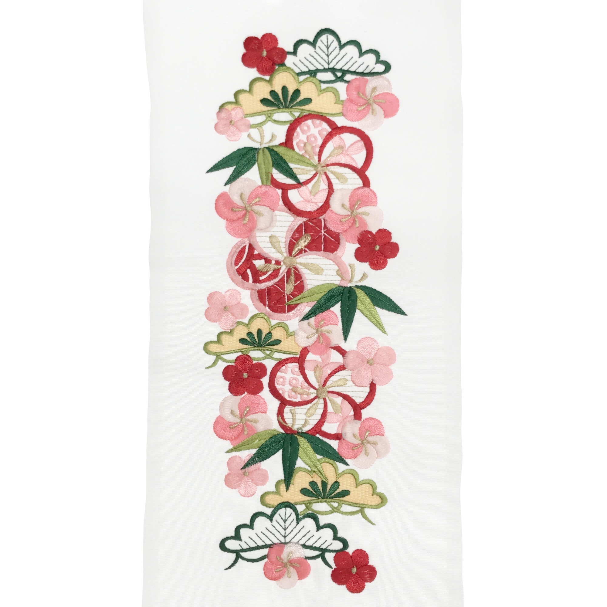 【半衿】ネジ梅に松竹梅 白/ピンク