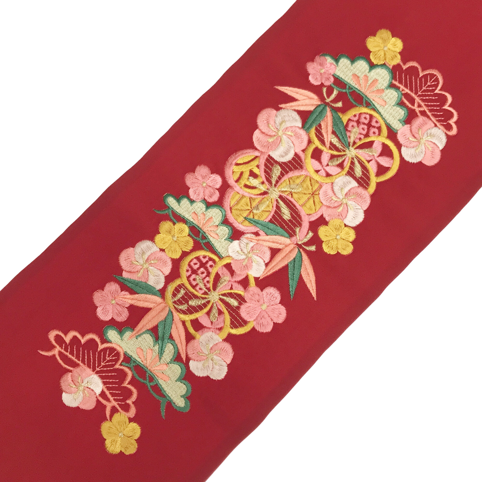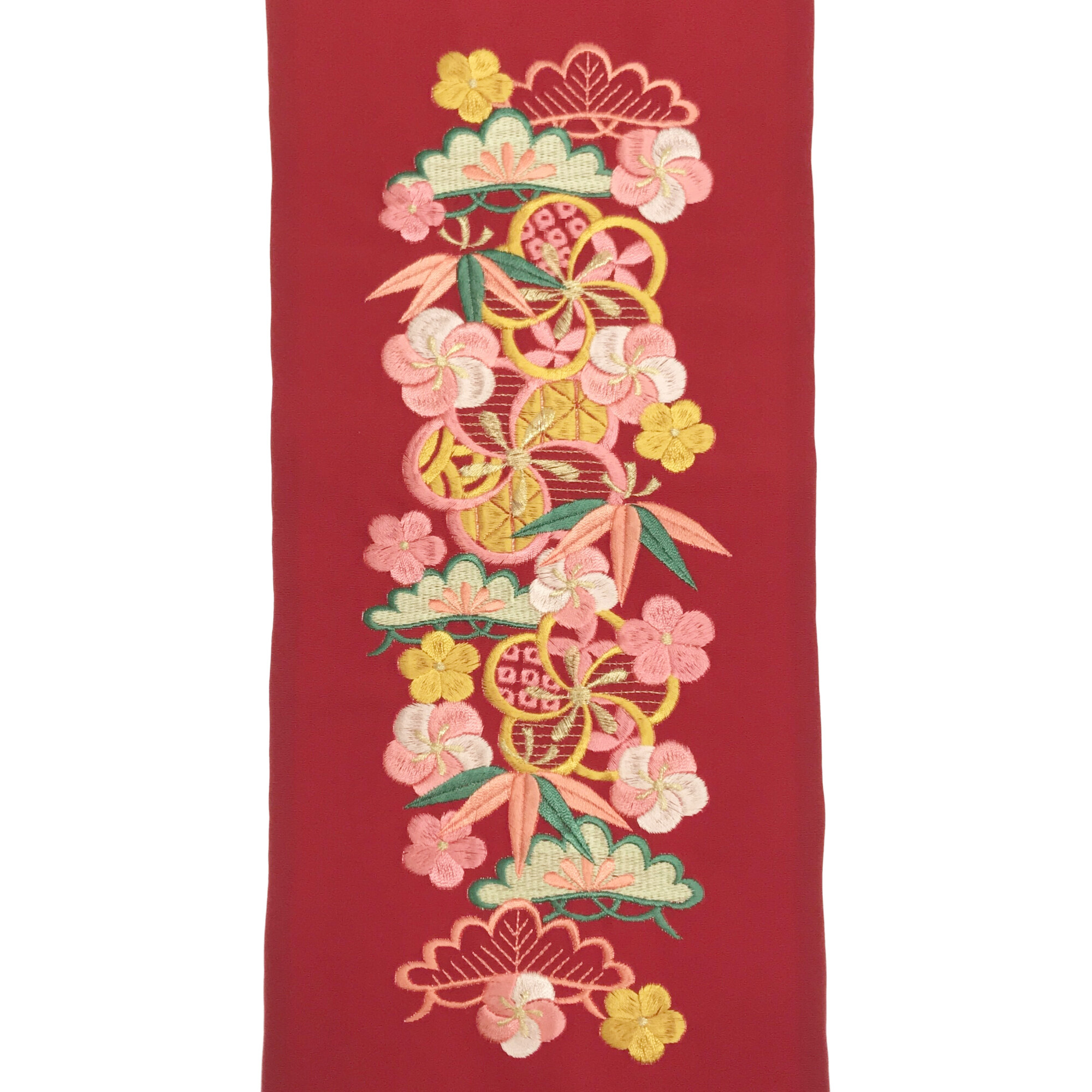 【半衿】ネジ梅に松竹梅 えんじ/ピンク