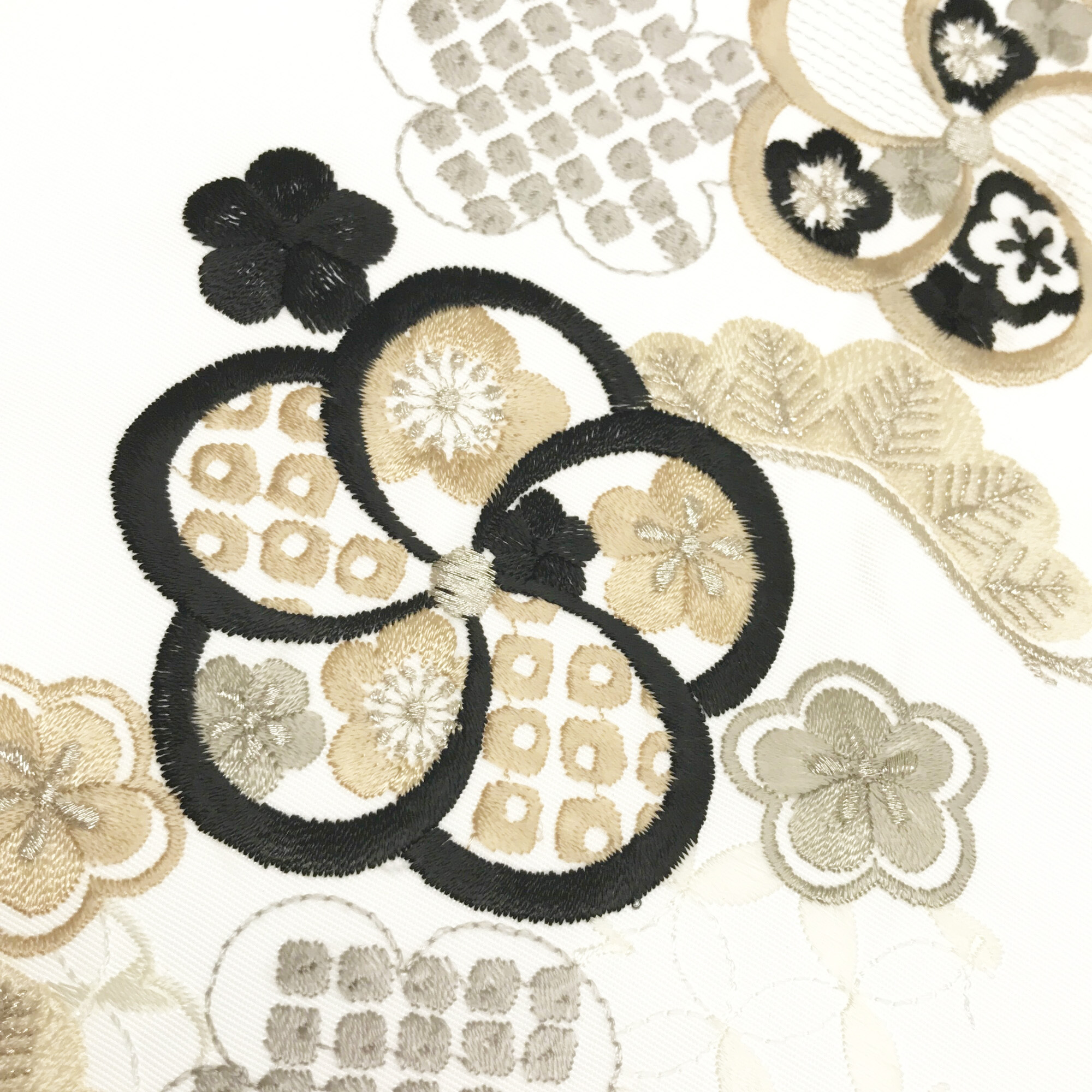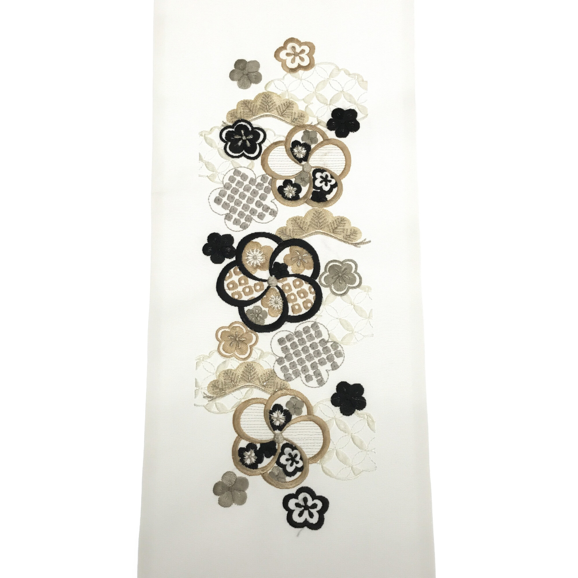 【半衿】雲取り七宝に梅 白/黒