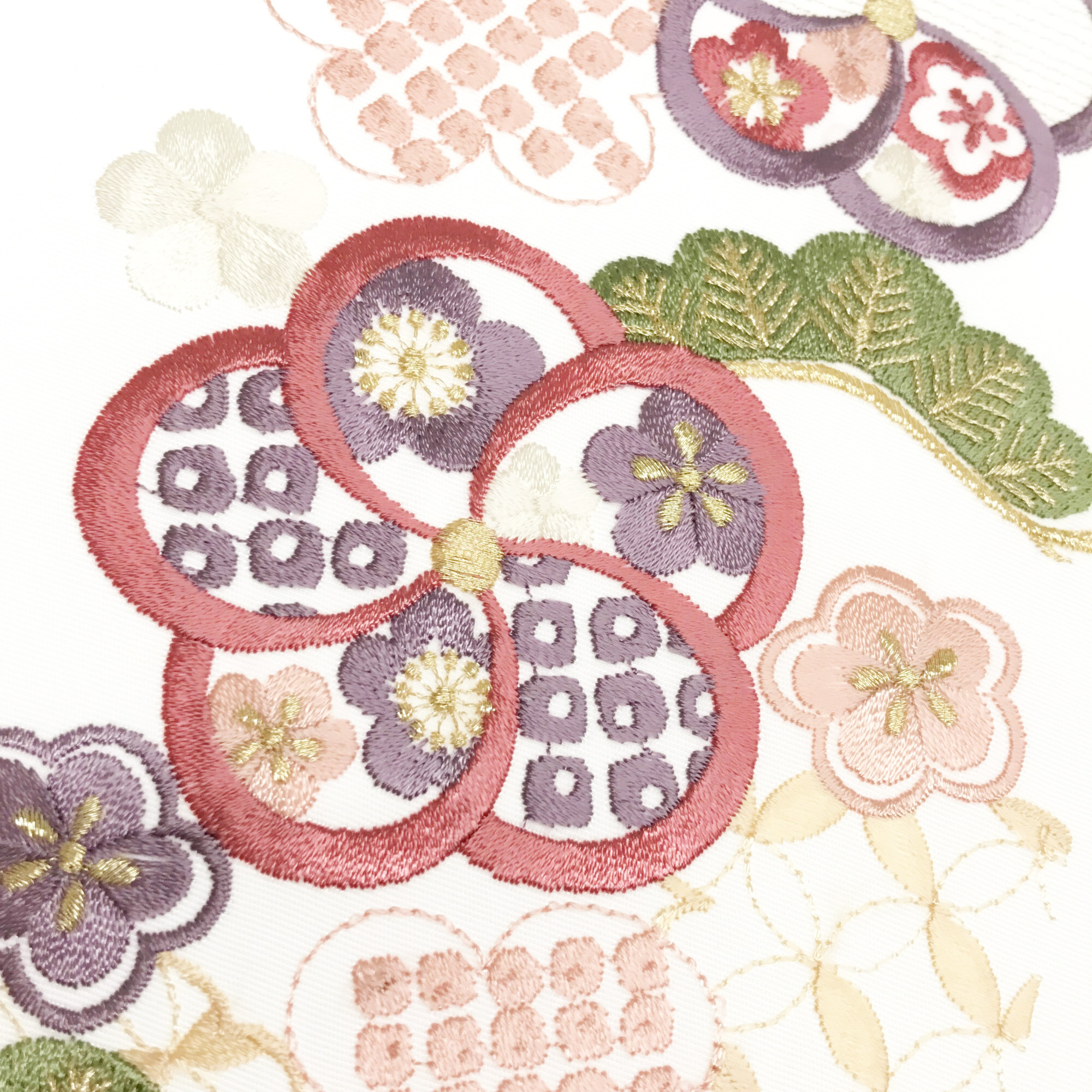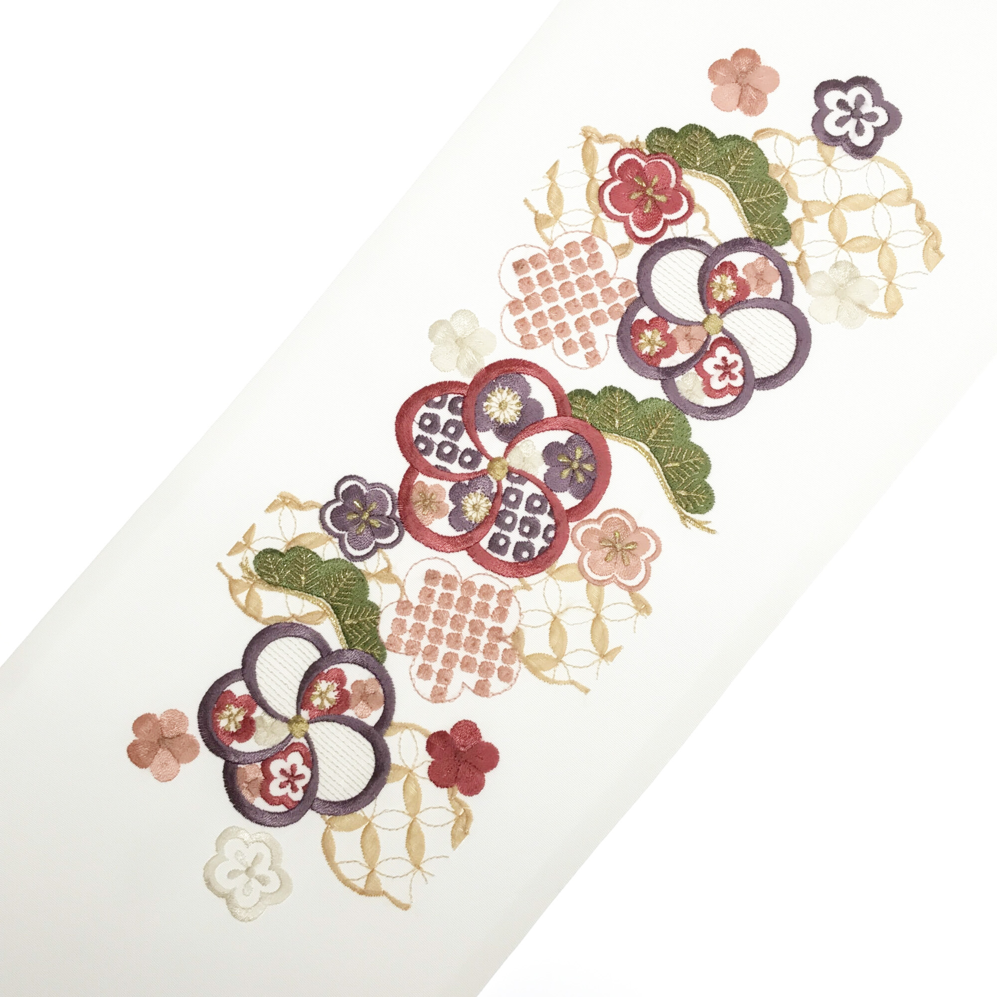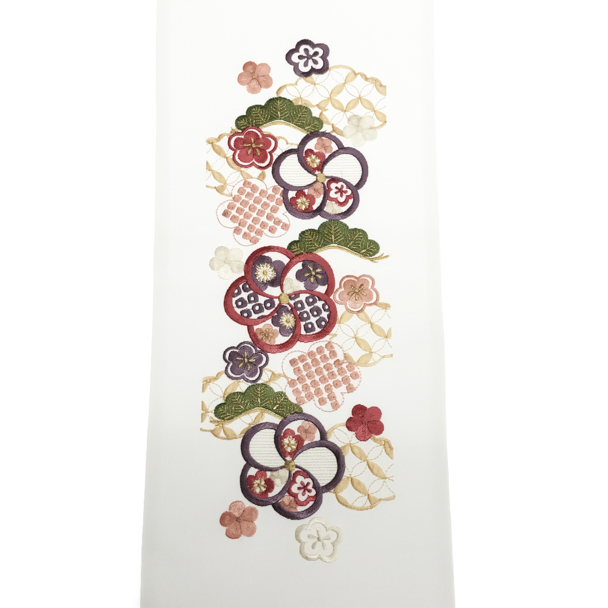 【半衿】雲取り七宝に梅 白/ピンク