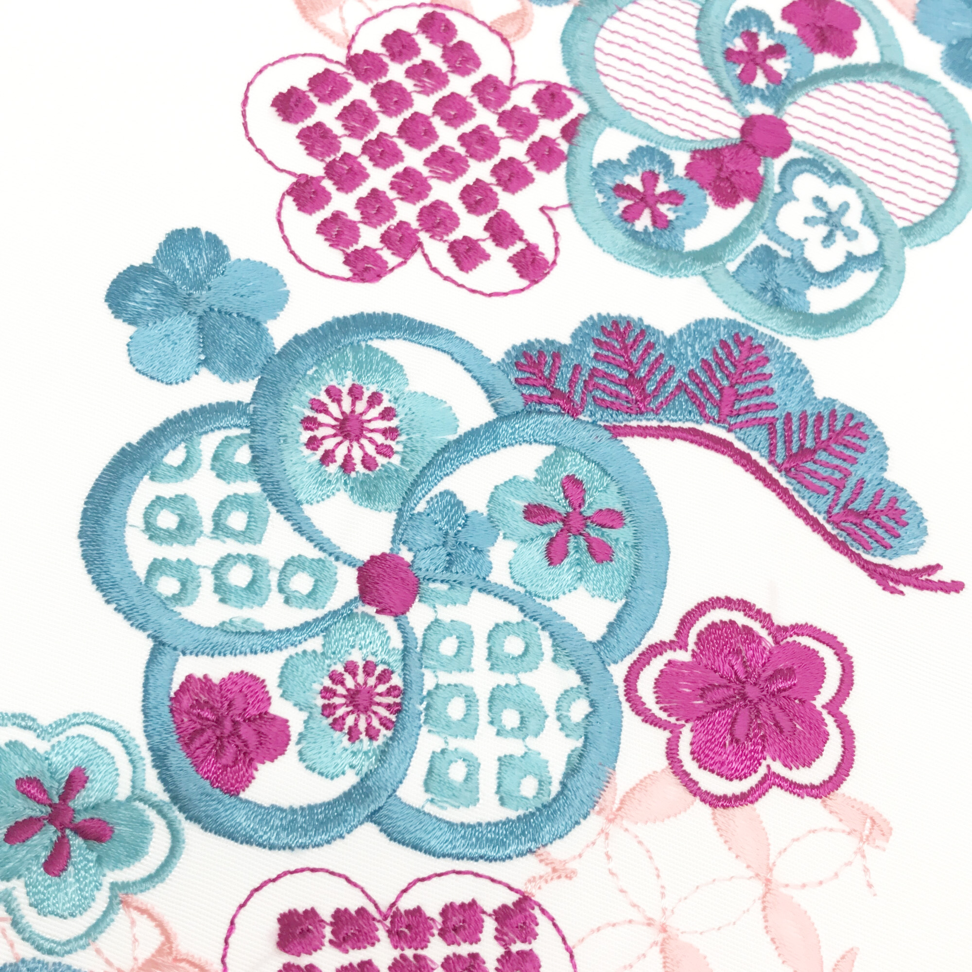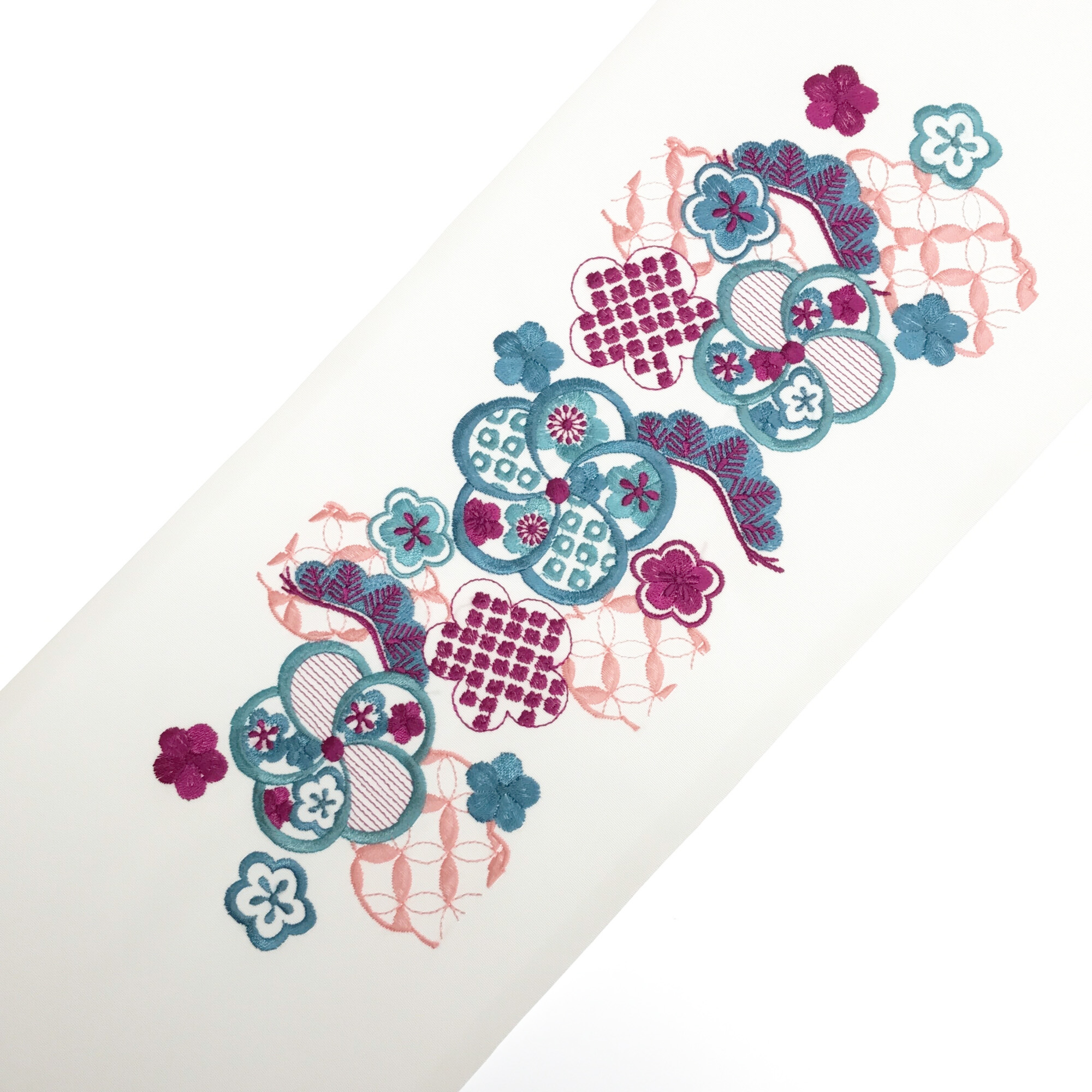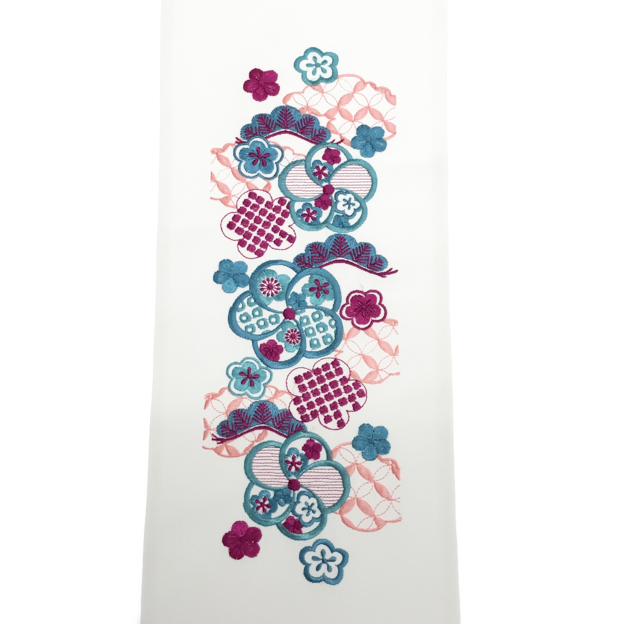 【半衿】雲取り七宝に梅 白/ターコイズ