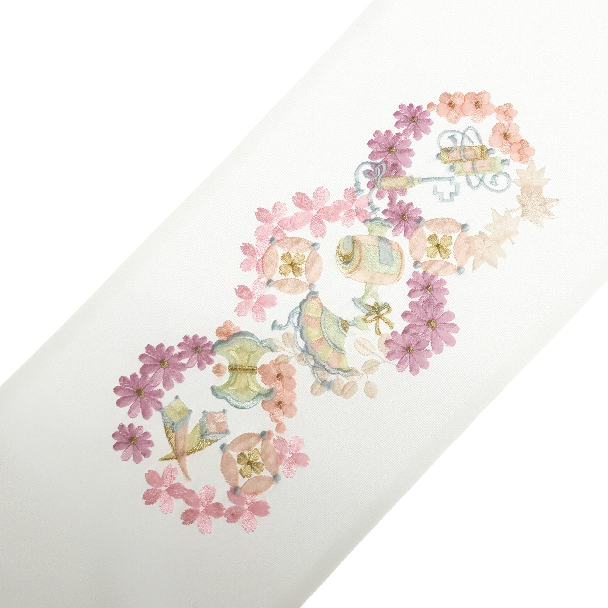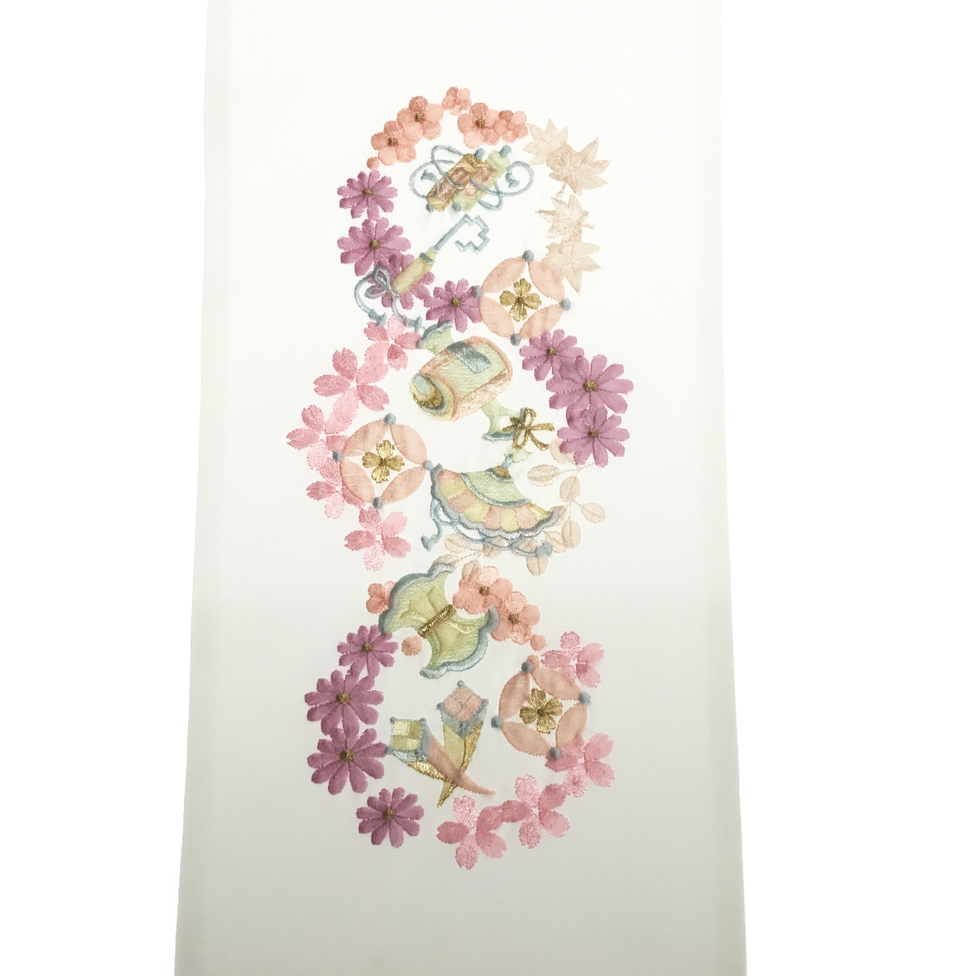 【半衿】花丸に宝尽し 白/ピンク紫