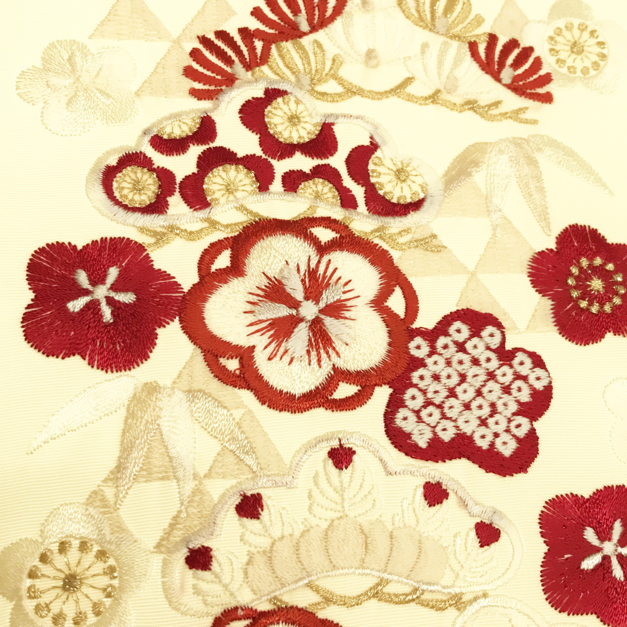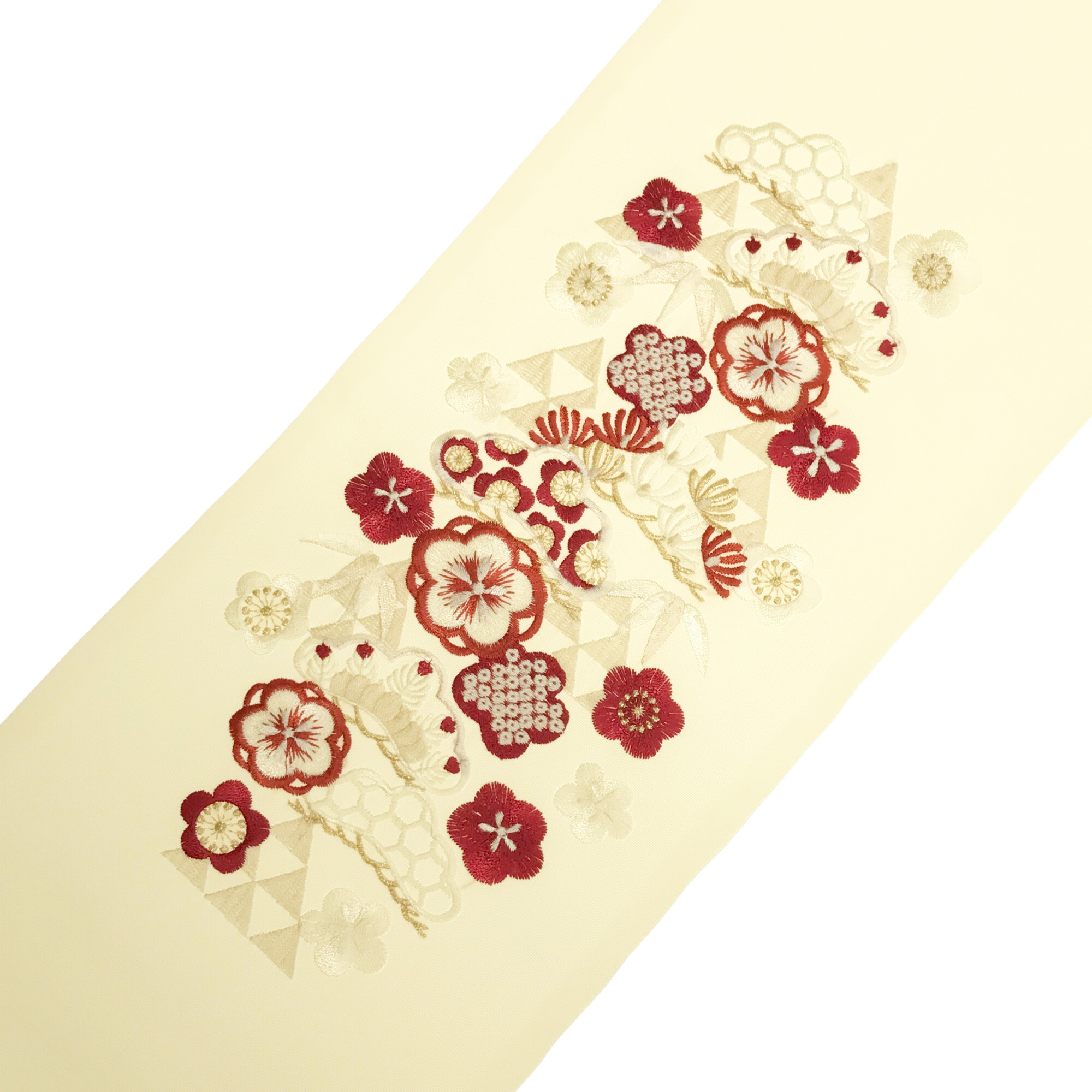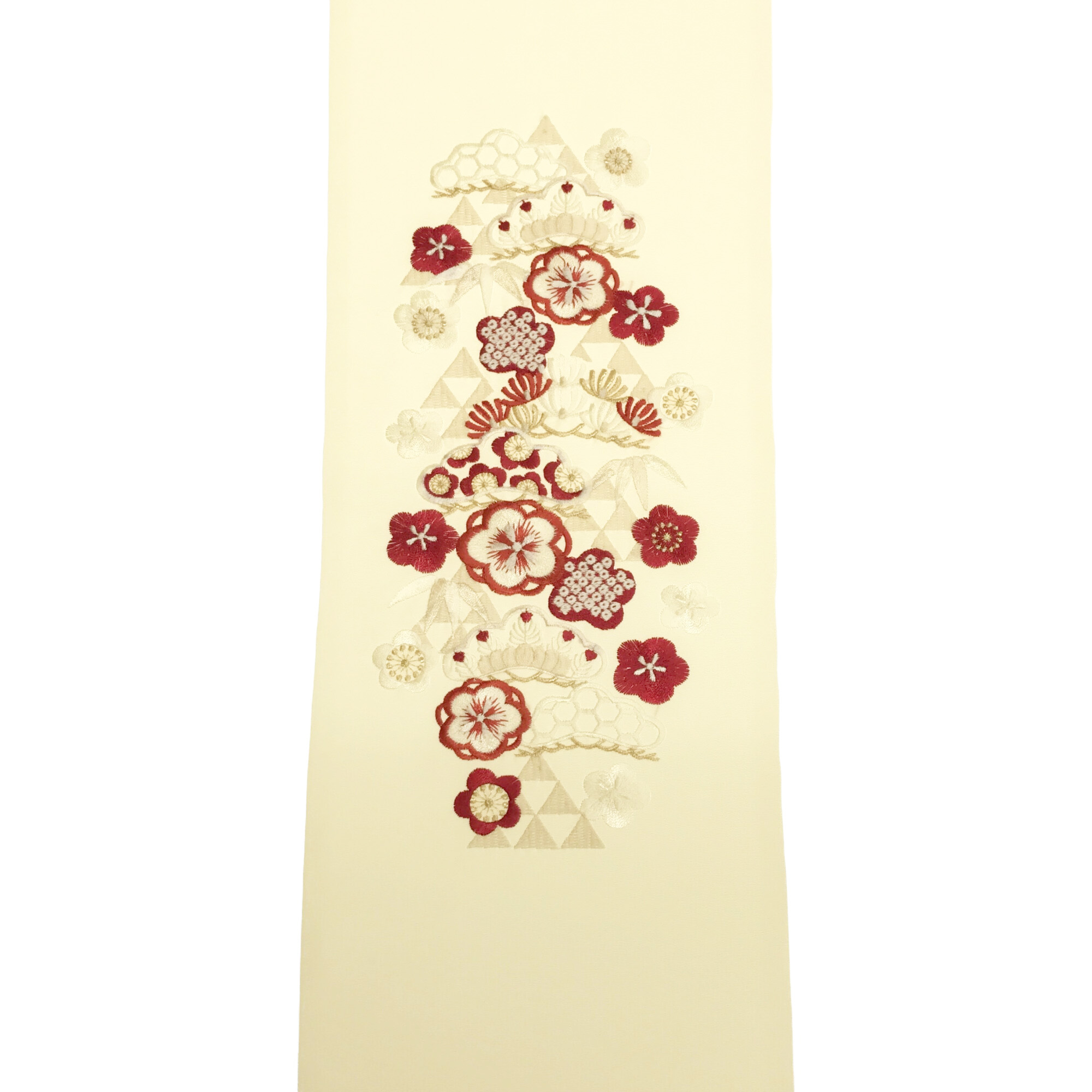 【半衿】三つ鱗に松 クリーム/赤金