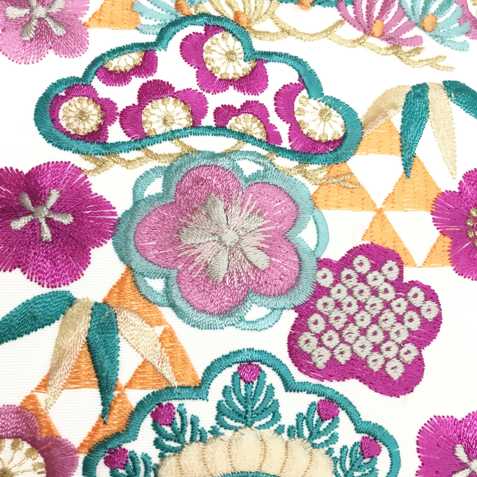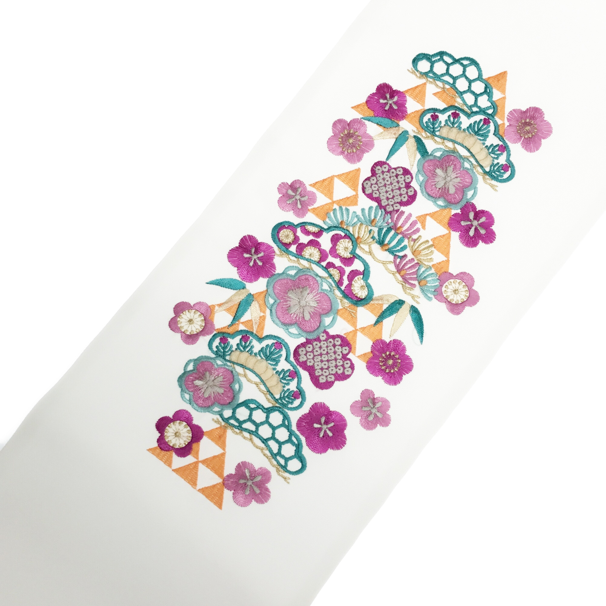 【半衿】三つ鱗に松 白/ターコイズオレンジ