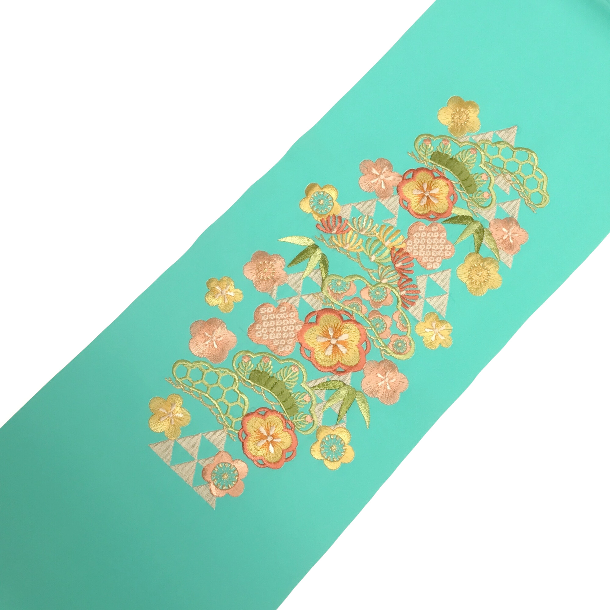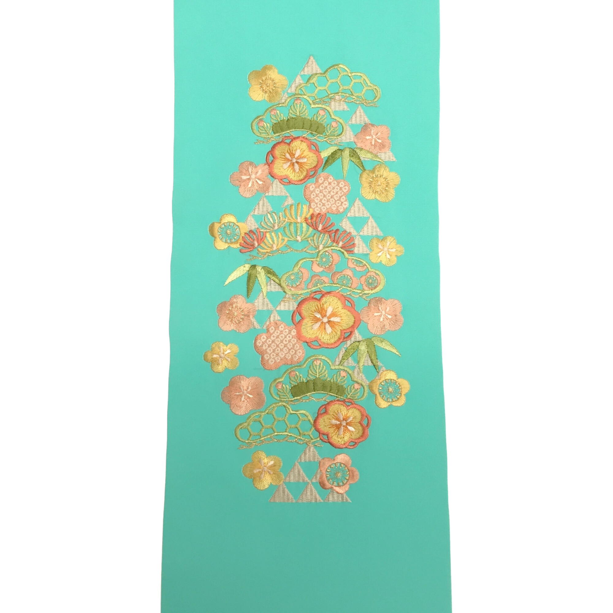 【半衿】三つ鱗に松 ターコイズ/薄ピンク