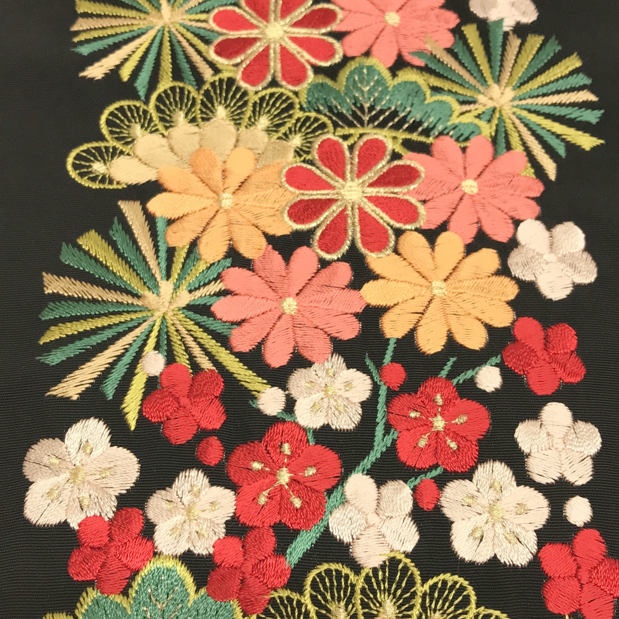 【半衿】松竹梅に菊 黒/色