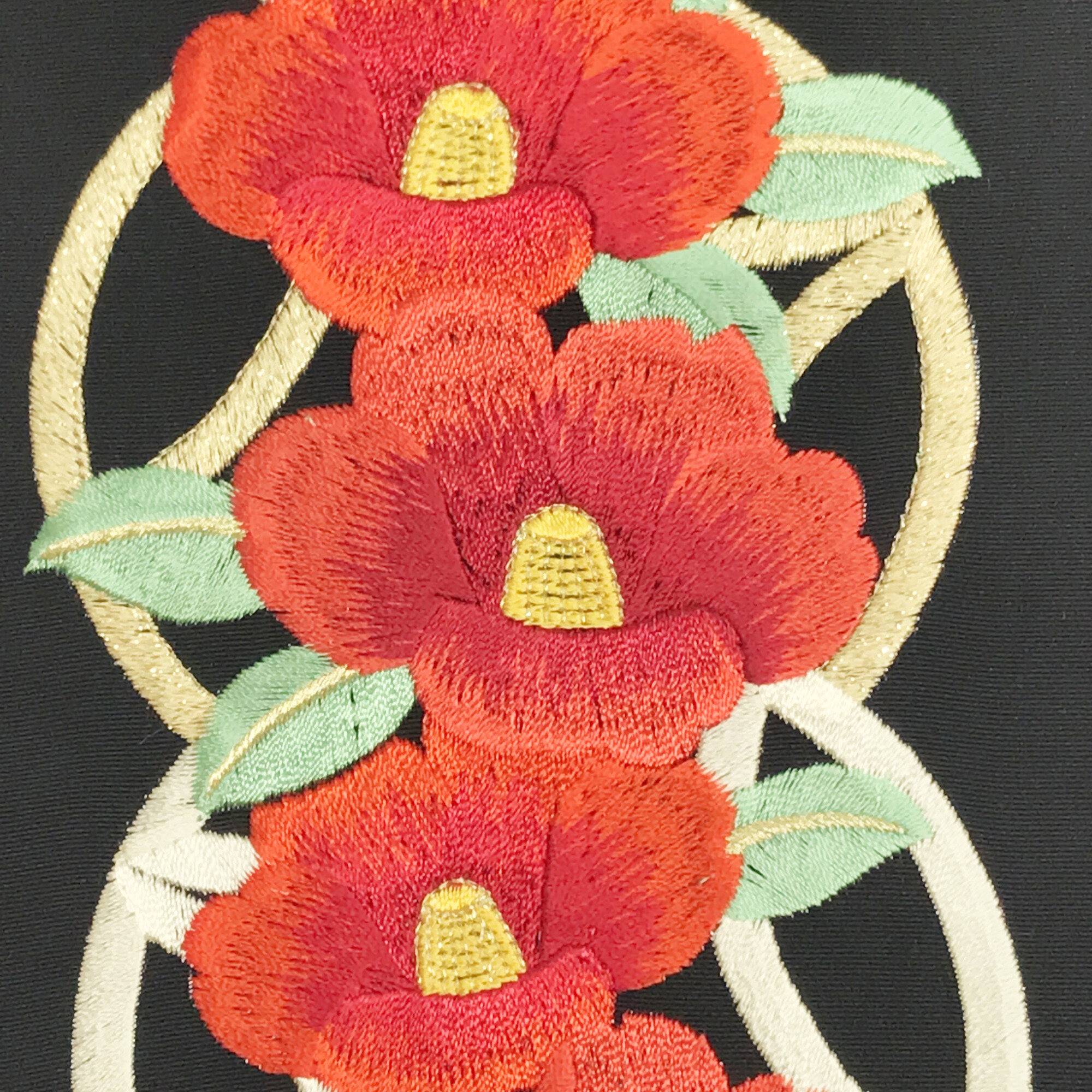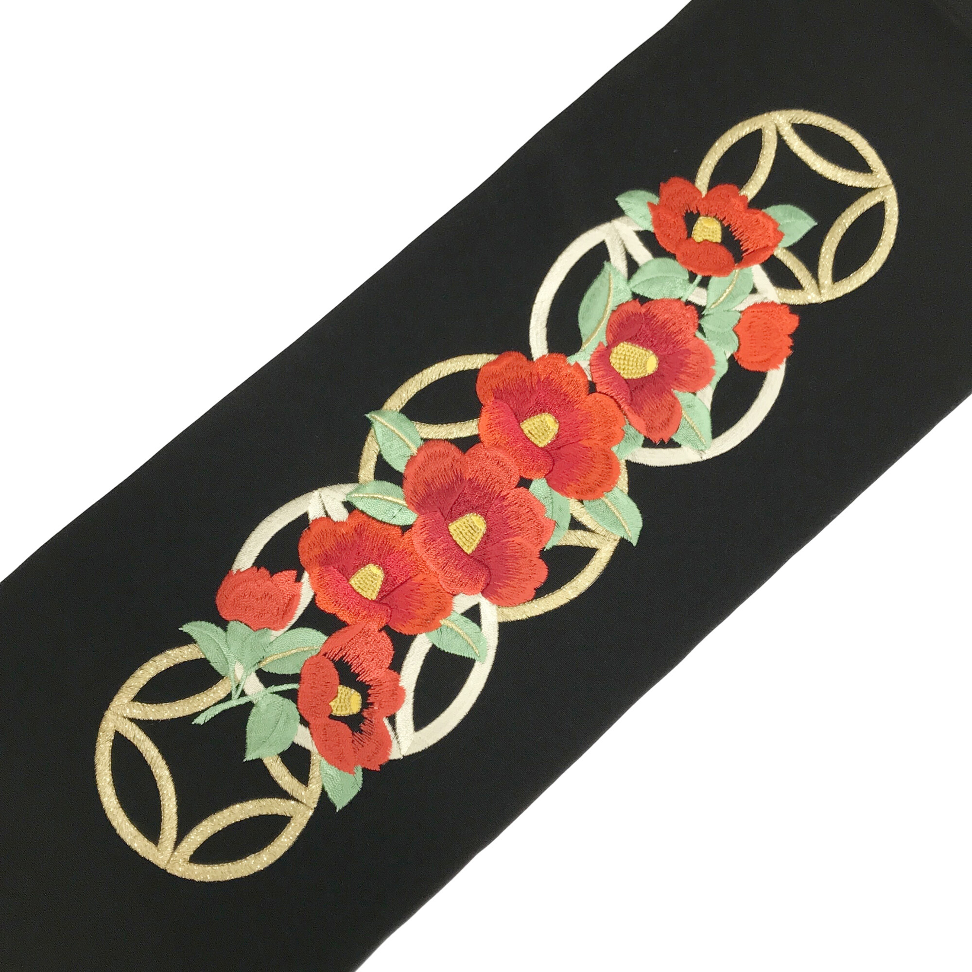 【半衿】椿に七宝 黒/赤