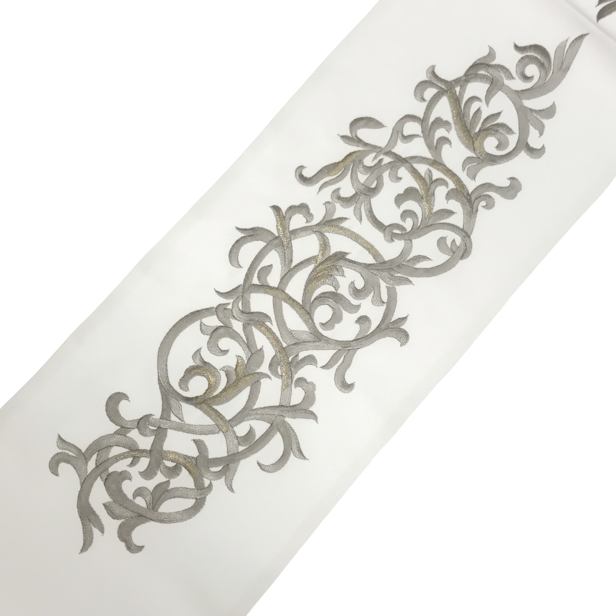 【半衿】唐草 白/薄銀