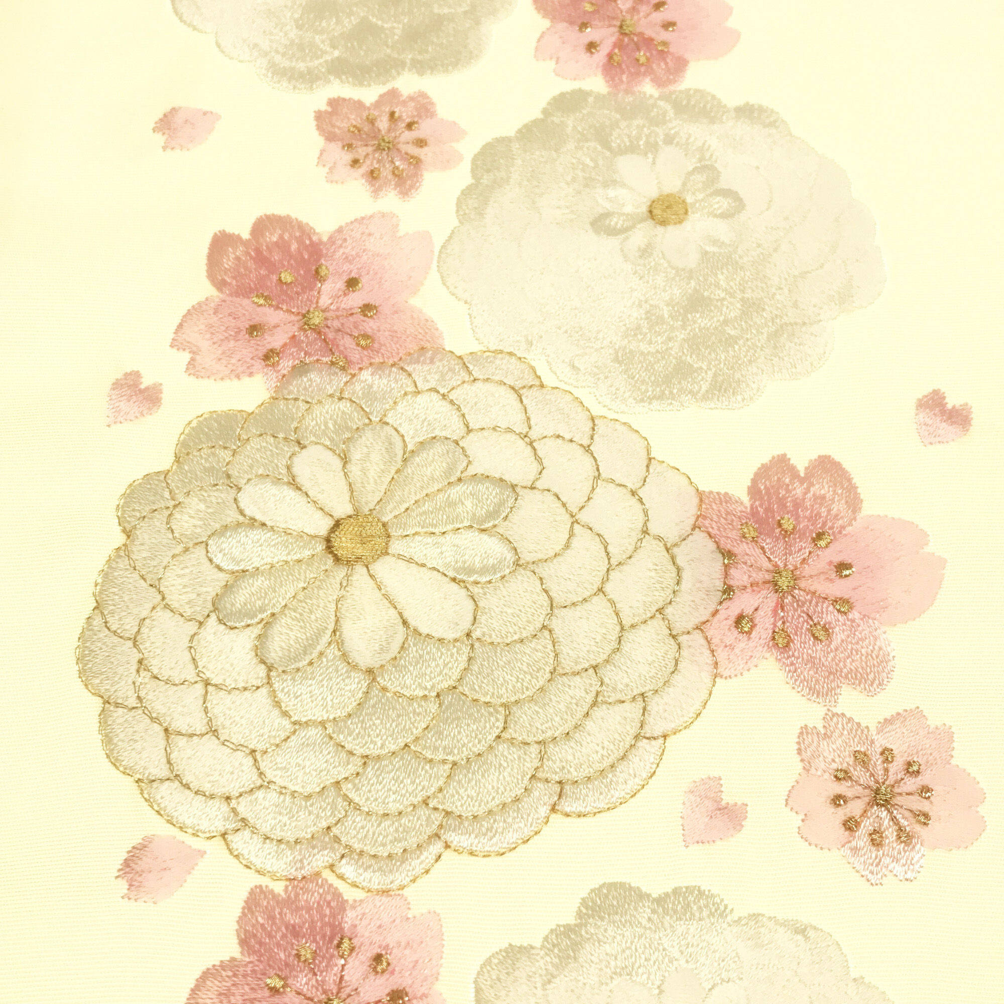 【半衿】万菊 クリーム/白