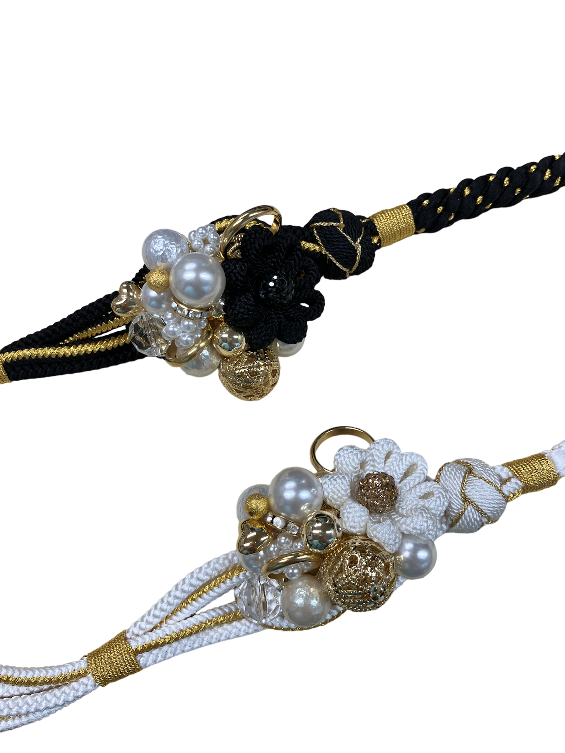 【帯締】花パール盛 白