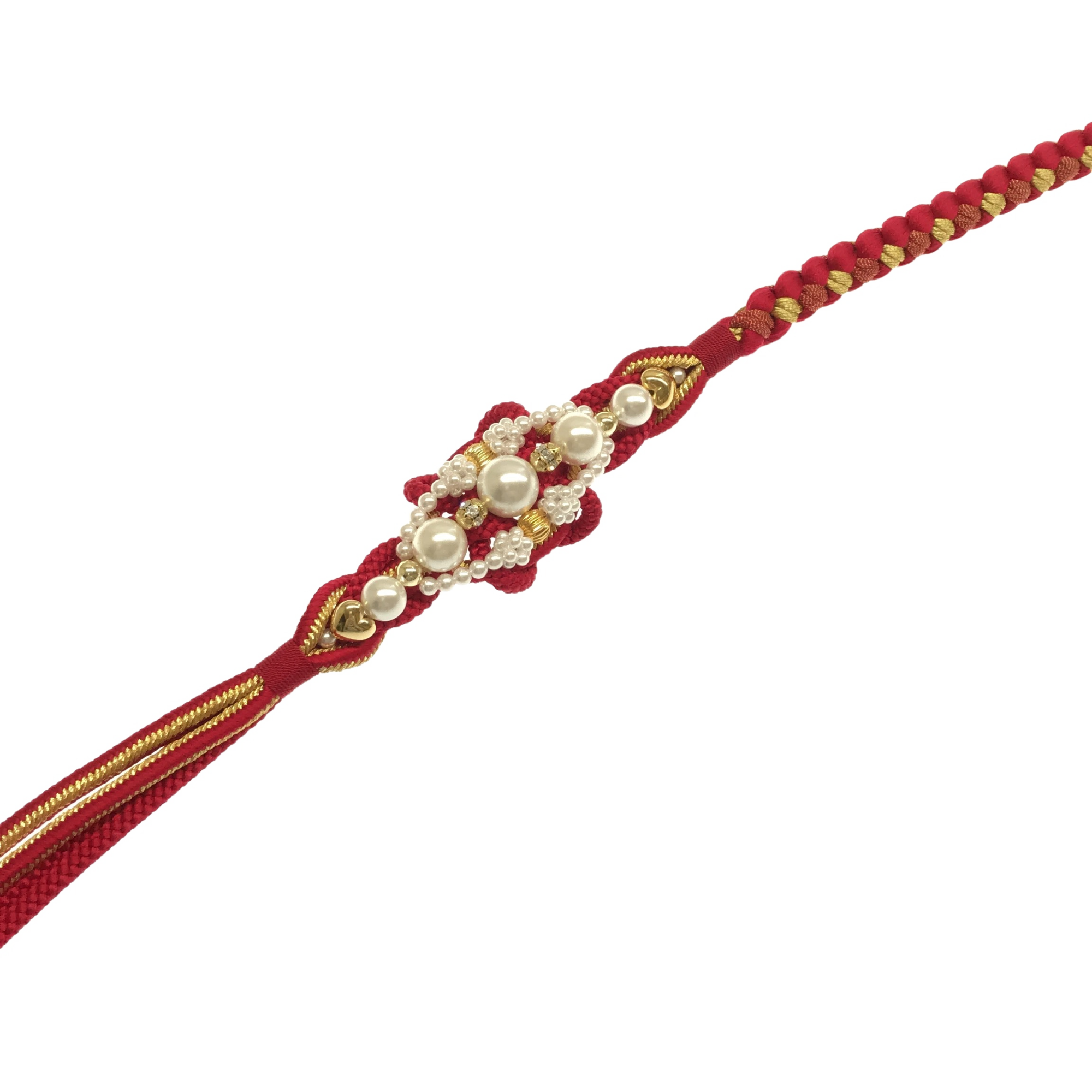 【帯締】パール 赤