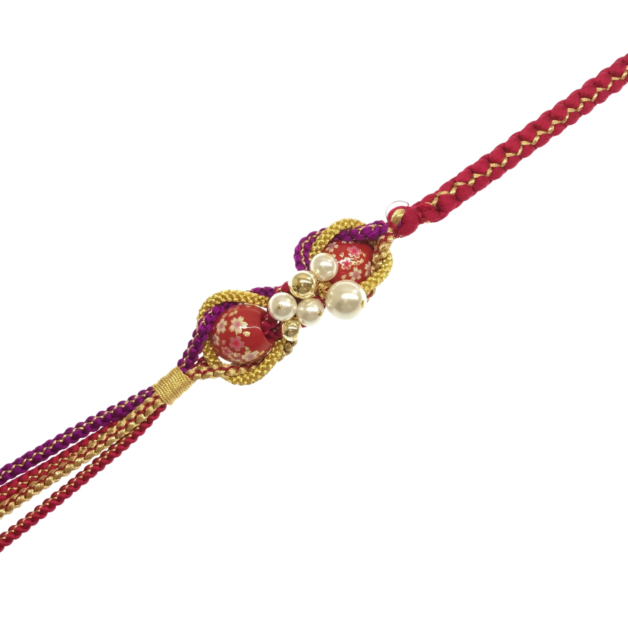 【帯締】転写玉パール 赤×赤